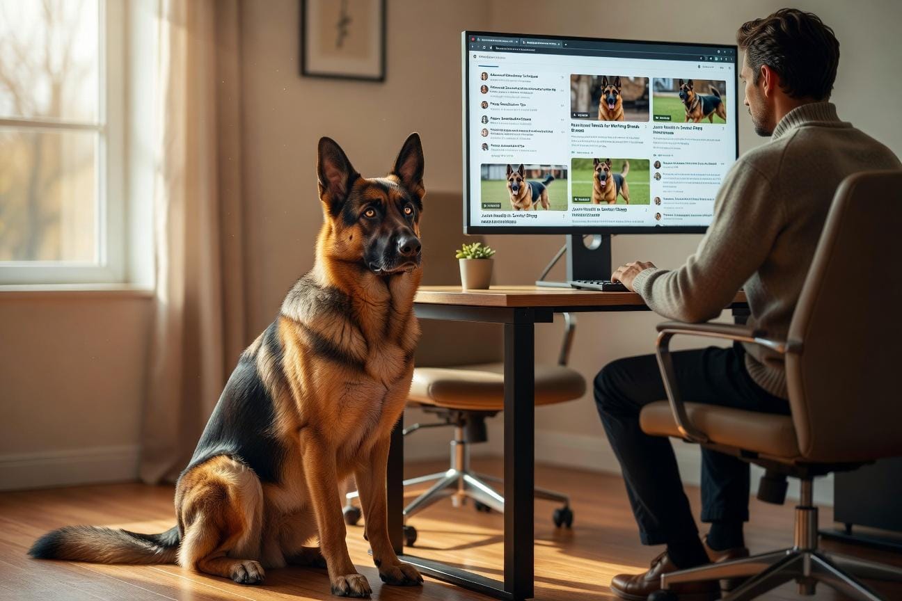 Właściciel z obsesją na punkcie psa śledzi fora, grupy i materiały szkoleniowe, by być na bieżąco z dyskusjami o kierunkach hodowli, zdrowiu i nowych metodach treningowych dla tej rasy owczarek niemiecki.